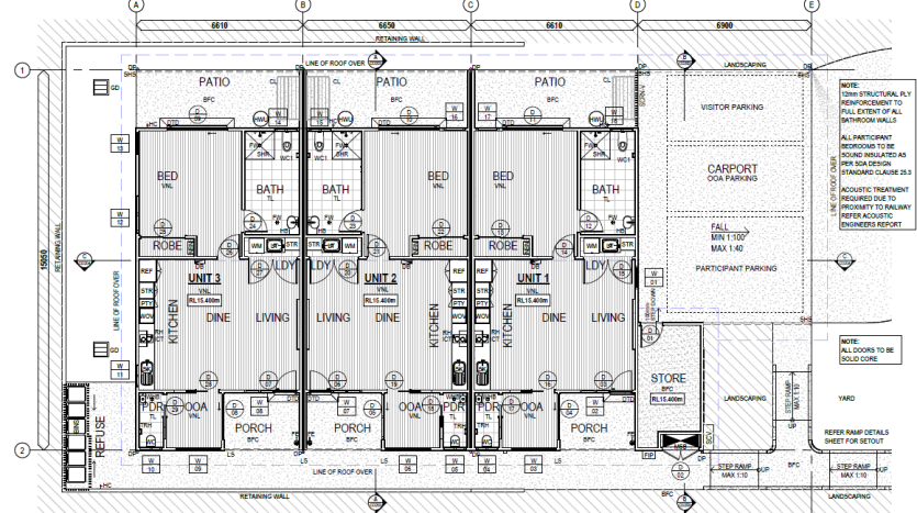 Designed with care and functionality, these robust villas offer three distinct residences tailored for SDA-funded participants and their support teams. Each villa includes a generously sized bedroom with a private ensuite, incorporating accessibility and safety features to promote independence and peace of mind. The open-concept kitchen and living area is equipped with thoughtful safety measures, enabling residents to navigate their daily routines comfortably and without obstruction.